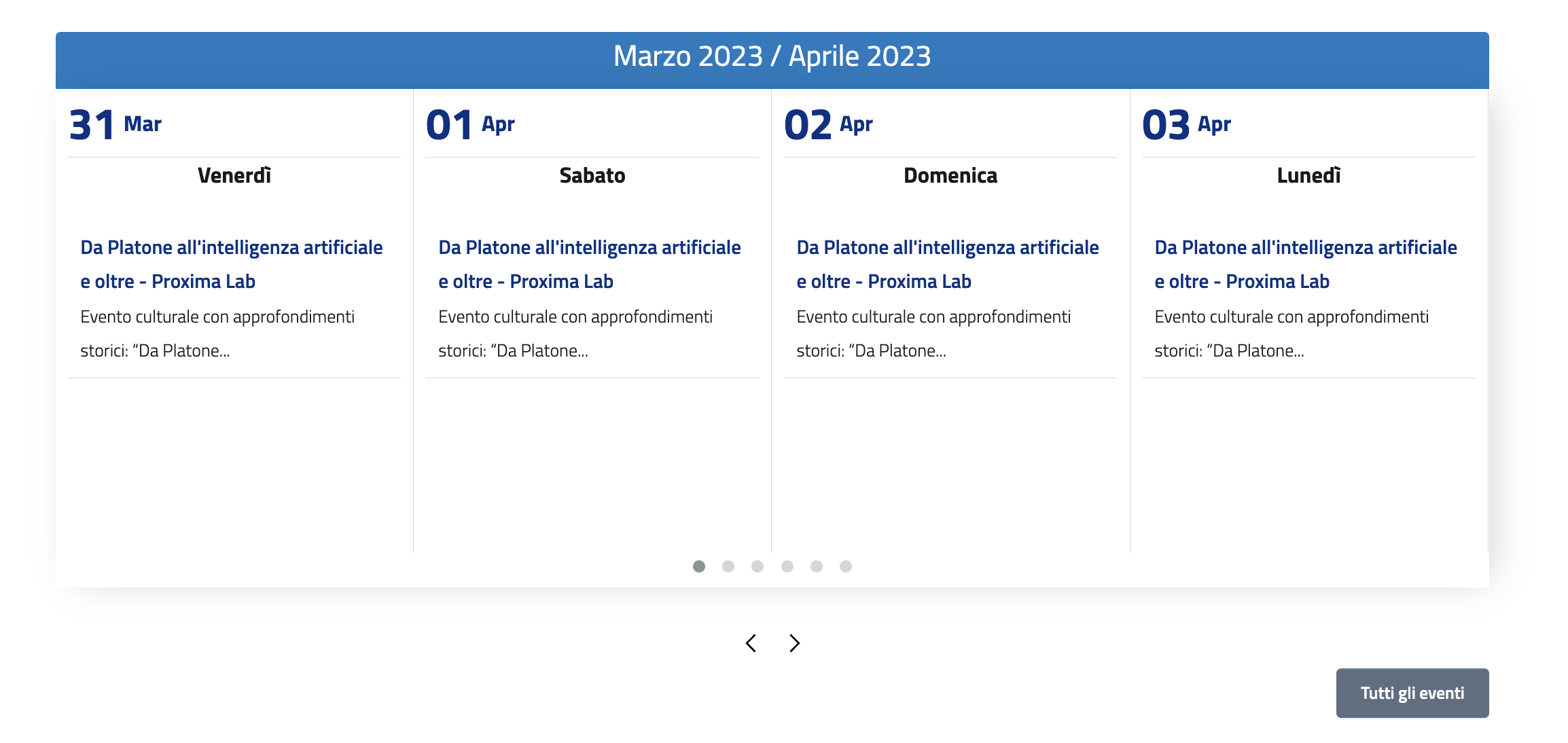 Questo contenuto permette di creare un evento che verrà pubblicato sotto la voce "Vivere il Comune" del menù principale e nel calendario in Homepage.