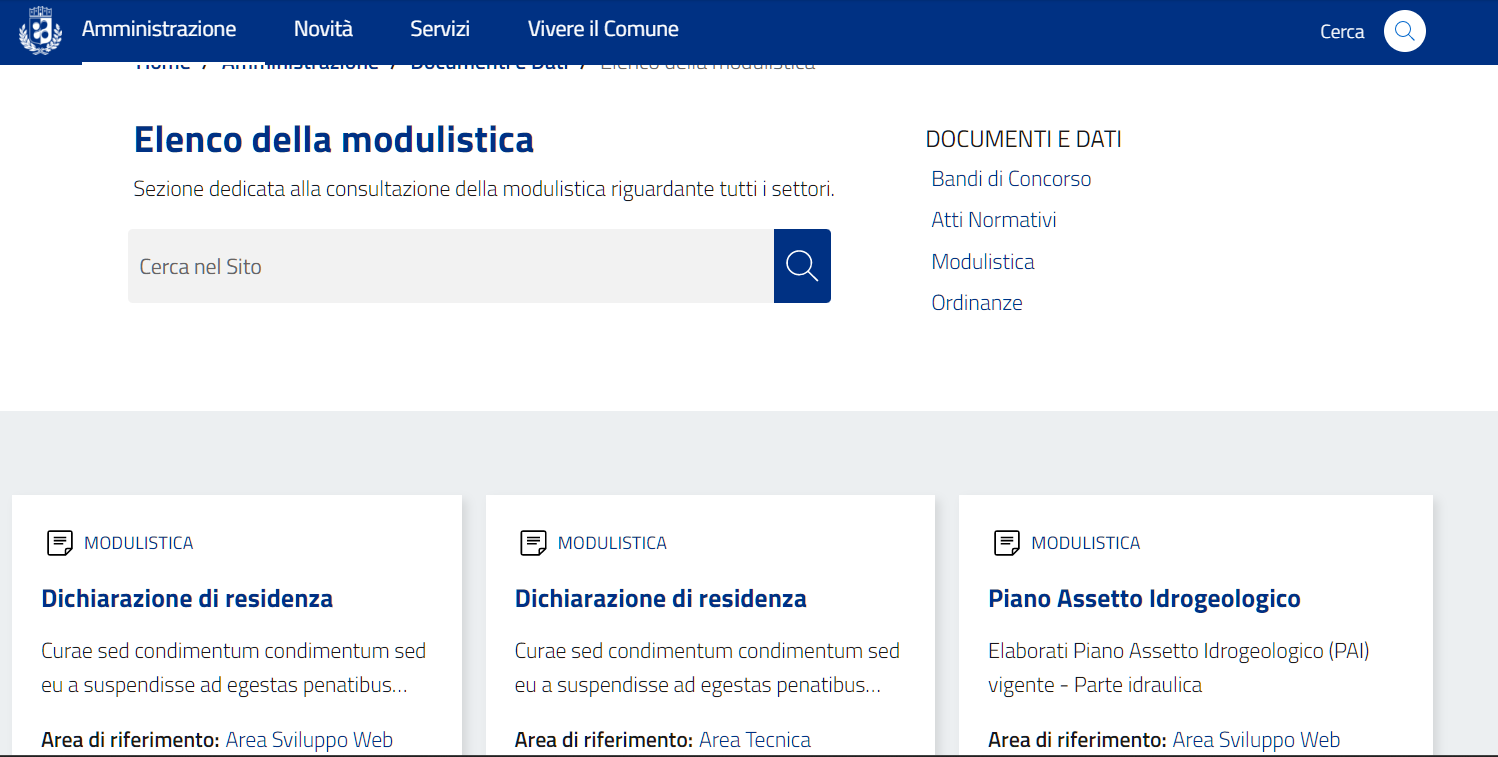La centralizzazione della modulistica è funzionale non solo per avere un solo luogo preposto a raccogliere tutti i moduli, ma anche per ottimizzare i caricamenti, in quanto, se un modulo dovesse