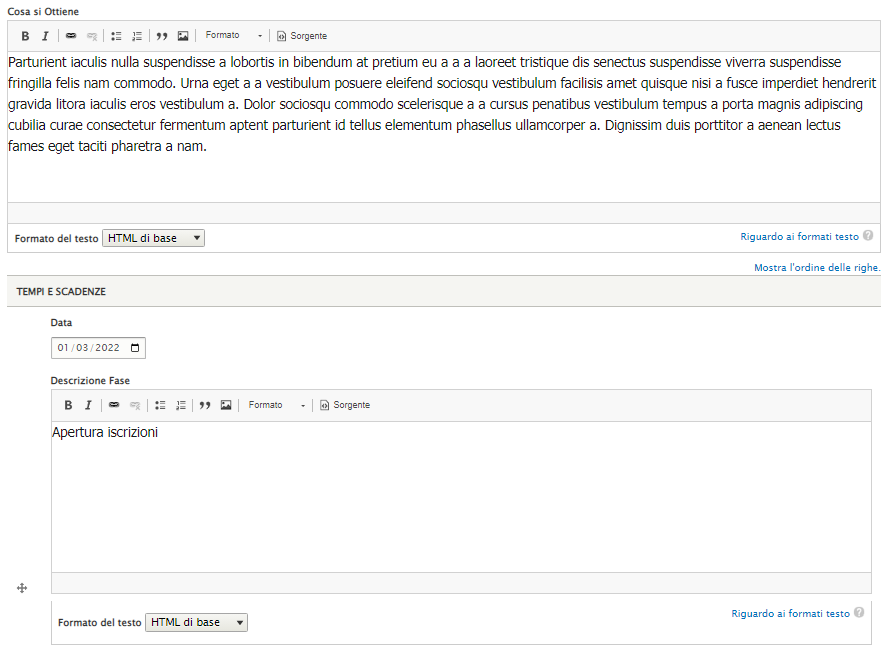 Nel caso si avessero allegati quali Moduli o Regolamenti NON vanno caricati in queste pagine, ma agganciati nelle pagine apposite.